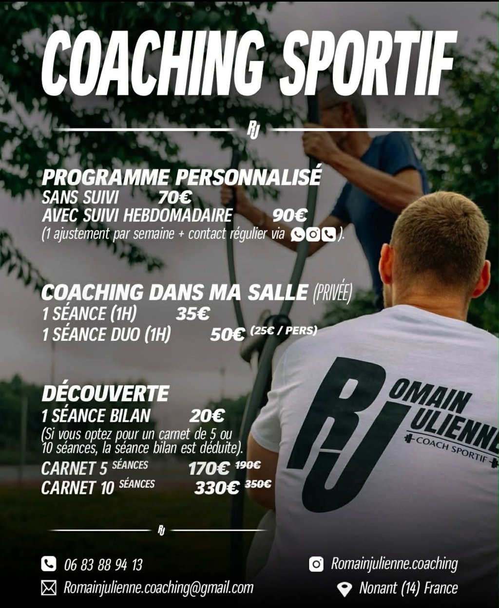Découvrez mes prestations de coaching sportif adaptées à vos besoins et objectifs personnels.
